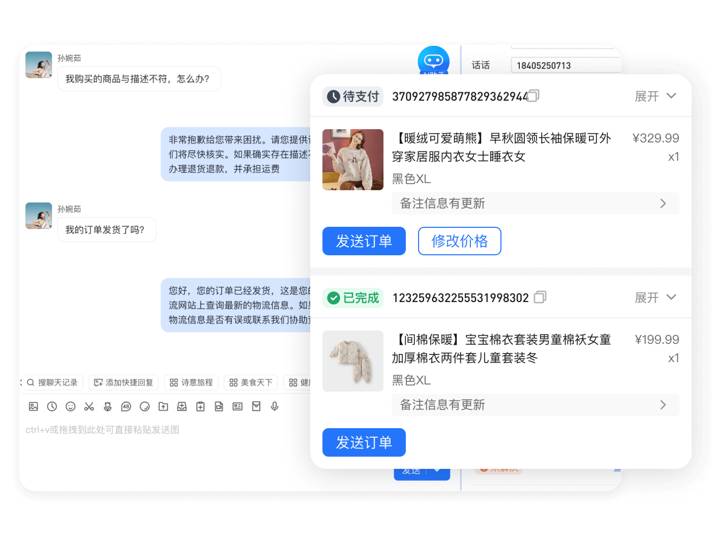 聊天时快速处理售后订单